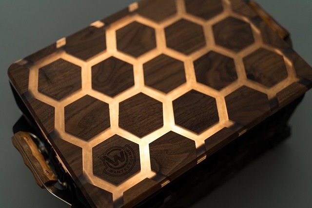 WANTKEYCAMPの1stプロダクト。 世界三大銘木のウォールナットとレジンを使用したBOXTOPは木材の加工から仕上げまで、職人が高度な技術を持って1点1点手作業で製作しております。 下から光を充てることで表情を変え、1日を通してCAMPLIFEを楽しませてくれるシェルコン天板です。 ・約422×310×54㎜ ・天板+スライドレールのみの販売です。 ・シェルコン25サイズ専用の天板です。 下記の注意事項をご理解いただいたうえで、お申込みをお願いいたします。 【納期について】注文確定から約6ヵ月でのお届けとなります。 ※BASEの仕様上、注文および決済確定時に 発送のメール通知をさせていただきます。 (発送はされません) その後、上記の納期でお届けさせていただきます。 【価格変更について】木材や原材料、その他部品の価格高騰により予告なく価格を変更する場合があります。 【仕様変更について】予告なく仕様を変更する場合があります。 ご応募いただいた時点で、 上記の注意事項に同意したものとさせていただきます。