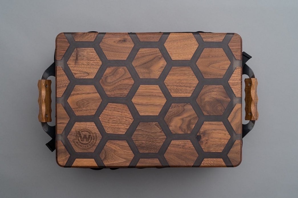 世界三大銘木のウォールナットとレジンを使用したBOXTOPは木材の加工から仕上げまで、職人が高度な技術を持って1点1点手作業で製作しております。